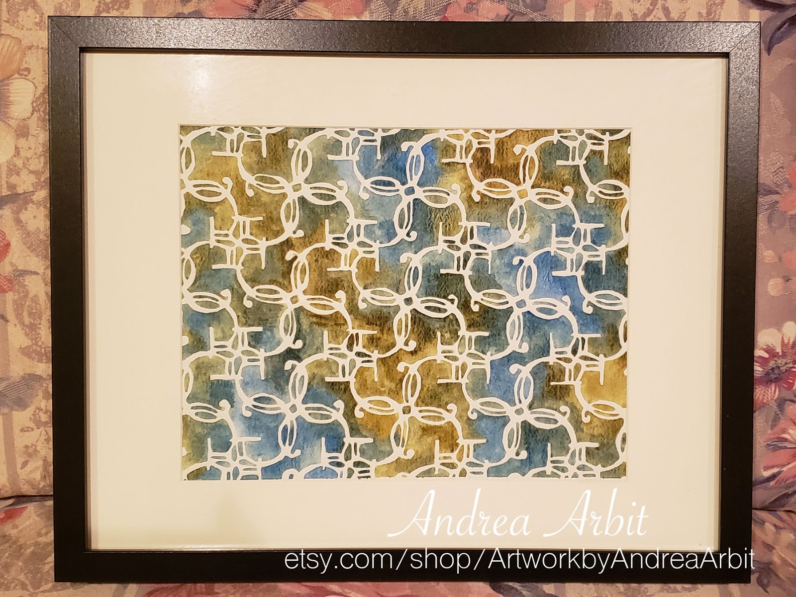 Over the years, I've created lots of patterned watercolor paintings. Many are smaller in size (5"x7" or 4"6" - which I often frame as sets together with other similar small watercolors), but several are a slightly larger 8"x10" size as well. I recently bought several 11"x14" frames, matted down to 8"x10", and framed all of the 8"x10" pattern paintings I've made.